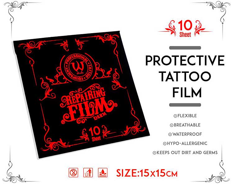 Se trata de un fino plástico auto-adhesivo que proporciona un entorno de curación húmedo durante la fase inicial, la más crítica de la curación de un tatuaje. Protege el nuevo tatuaje de la fricción y proporciona una impermeabilización que impide que los agentes patógenos y contaminantes externos entren en la herida. La película es transpirable, permitiendo que el oxígeno y el vapor del exceso...
